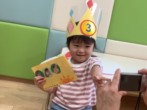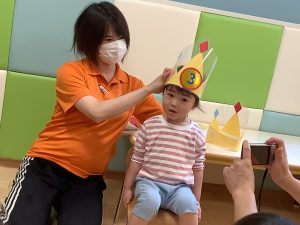 保育者から王冠とカードをもらうと嬉しそうにしていました💕