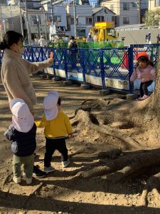 遊びの中で異年齢が関わっているのが微笑ましい光景ですね💕