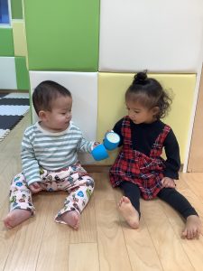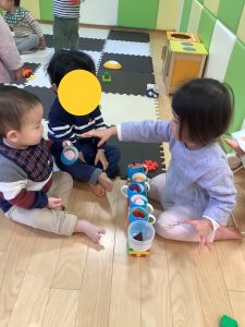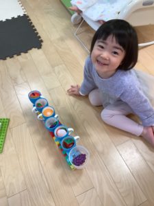 もも組のお友達はおままごとのコップを持って「乾杯」をするのがはやっています☺️