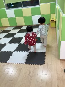 こんな様子も見られます!手を繋いで部屋の中をお散歩しています
