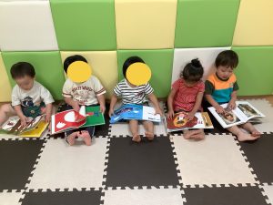保育者と一緒に見る事はもちろん大好きですが、1人でじっくり集中する時間も増えてきて端の方で読んでいたりする姿が見られます![]()