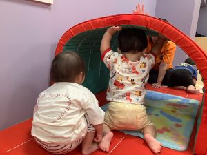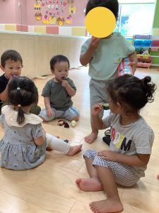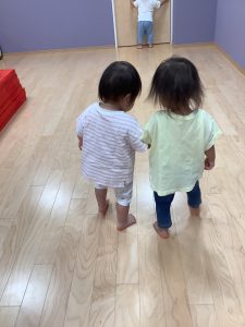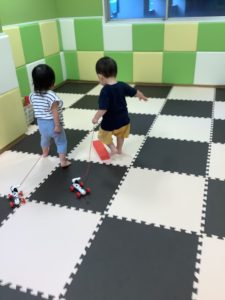 0歳から2歳の間は1人で遊ぶ事も多い時期ですが、自分以外にもお友達という存在を認識し、相手がやっている事に興味を示していきながら一緒に遊んでみたいなぁ…と思うようになっています![]()