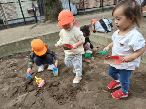 砂場では何を作ろうかな?と考えながら遊べますよ![]()