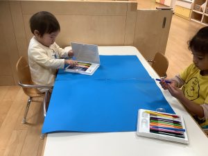 色塗りやお絵描きが大好きな子供たち。色の名前も覚えてきていて