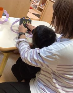 猫の仮面をつけた園長先生でした!ちょっとびっくりしちゃったかな?