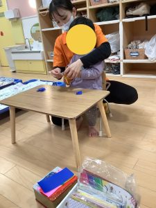 保育園で初めてハサミを使う練習をしました!