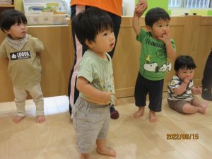 2歳児さんの真似をして、0・1歳さんも楽しそうです