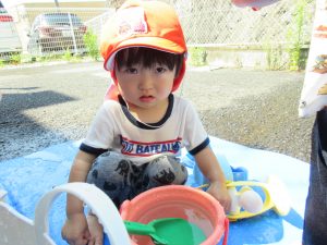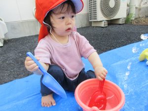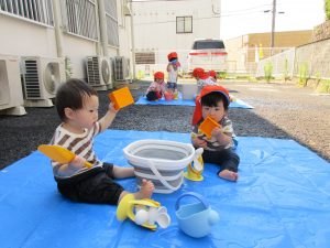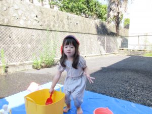 サンライズキッズ保育園 生駒園では今日から、水遊びが始まりました?