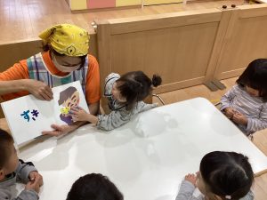 絵本をトントン叩いて動物が出てくると
