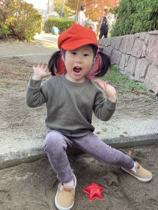 赤色の葉っぱを見つけると「あか!はっぱ!」と