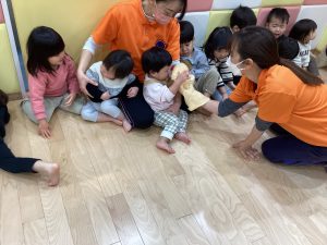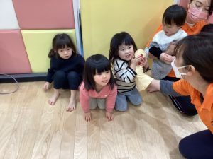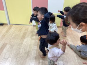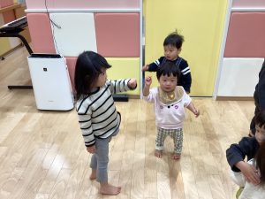 『お友だちと握手しよう』のお歌に合わせてぎゅーっと抱きしめてくれたり