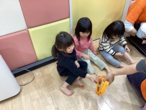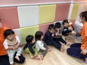 『さあ叩こう』のお歌に合わせてリズムよくポンっと叩いてくれます😙