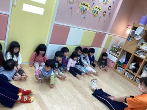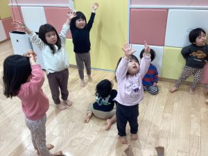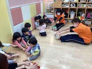 先生の見本を見ながら子どもたちは上手に真似してくれています😄