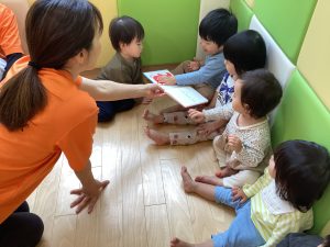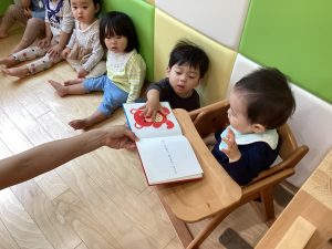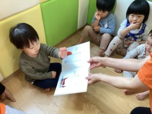 と言って手で絵本を触って見たり