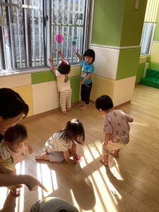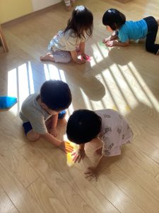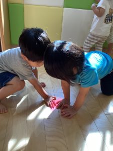 光探しに夢中の子ども達、