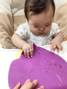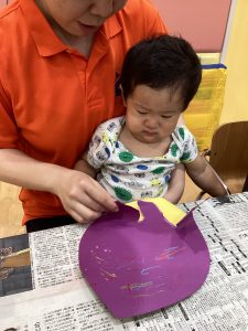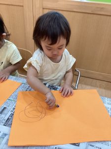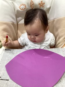 0歳児もも組🍑さんは、クレパスでお絵描きをしました✏️
