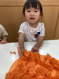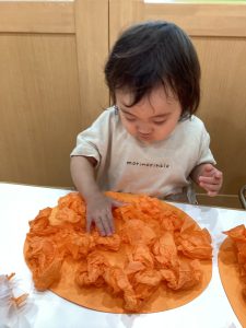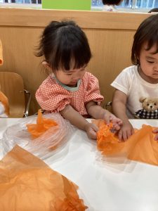 お花紙をクシャクシャして