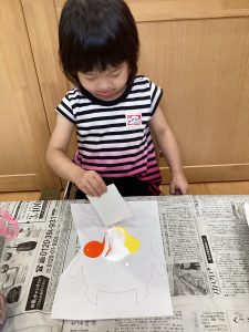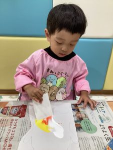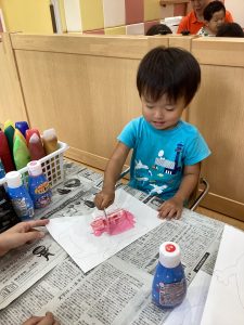牛乳パックで絵の具を伸ばして塗り塗り😋
