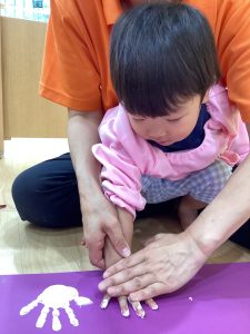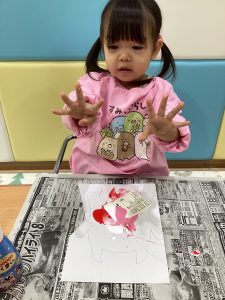 白色の絵の具で手形を取りました🖐🏻