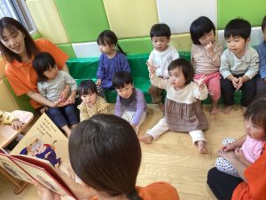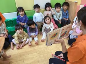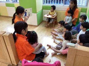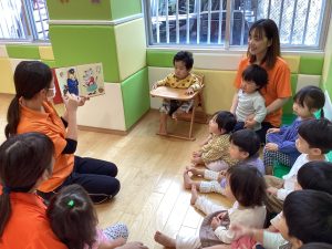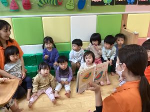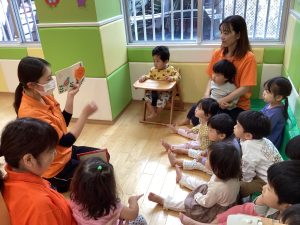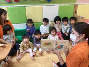絵本の絵柄を見ながらみんなでお歌を歌いながら