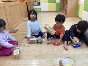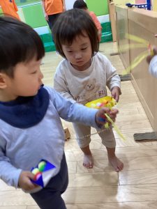 1歳児さんも誘って、1歳児さんと2歳児さんみんなで