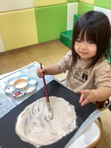 絵の具が伸びる様子を楽しんでいました🤩🎶