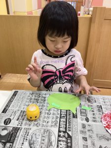 すごい集中力で、指にのりをつけてのり付けをしていました👏🏻