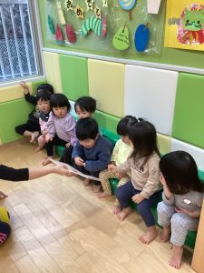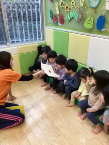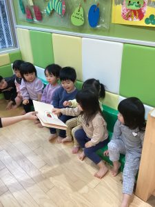 初めて読む絵本に子ども達も大喜びです📕