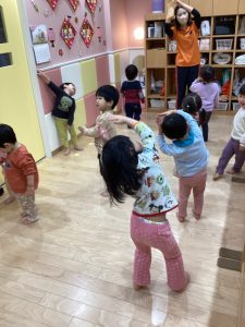 表現遊びでは、音楽を流しながら