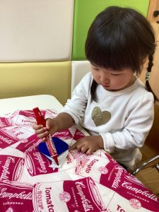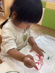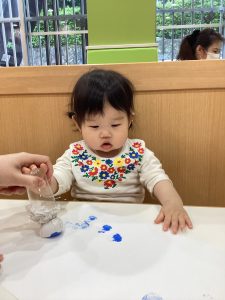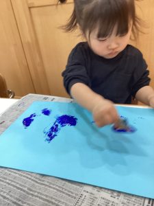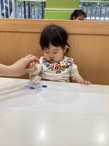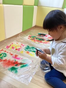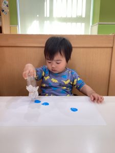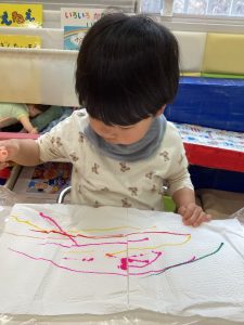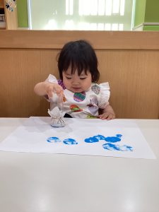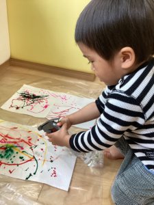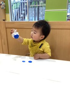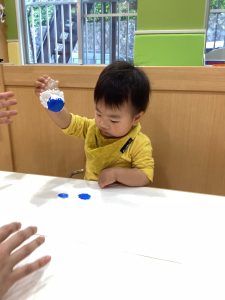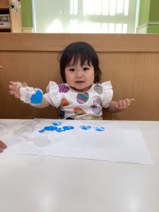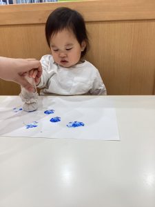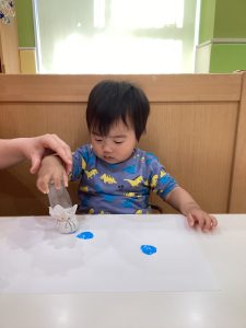 1歳児さんは、絵の具で