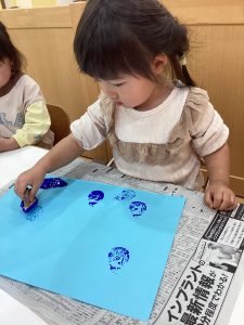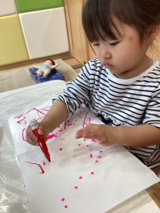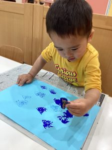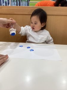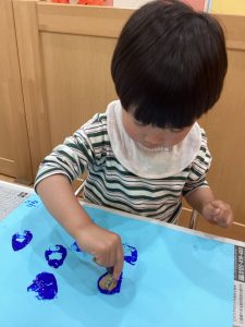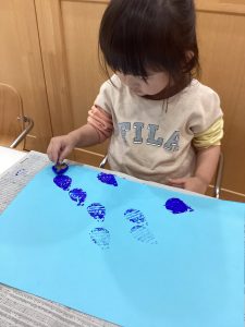 2歳児さんは、雨粒の形のスタンプを☔️