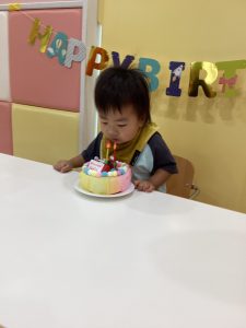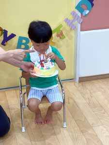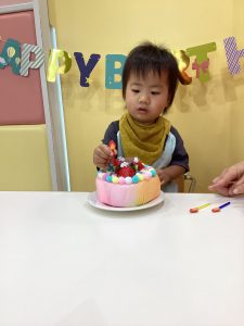 毎月、ケーキが登場すると、ニコニコ笑顔で