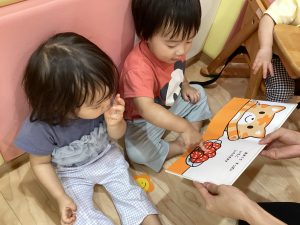 お膝に座って絵本を読んでもらうのも