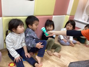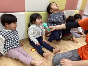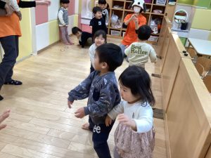 子ども達の声が保育室に響き渡っています😄🎶