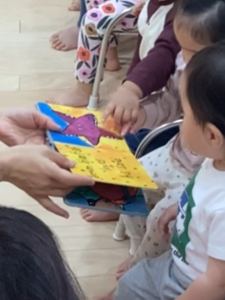 絵本の感触を触って楽しんでいました📚
