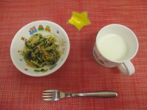 ブロッコリーの中華和えは、ごま油が入っていて食欲をそそる味付けになっています。子どもたちは、おかわりもして、たくさん食べました!