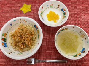 サンライズキッズ保育園 ◎給食の様子 今日の給食は、スパゲティミートソースです! 「いただきます!」...