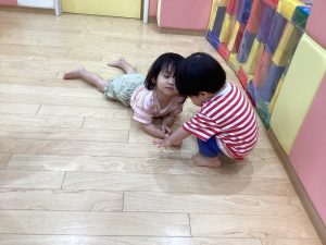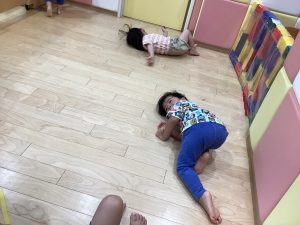 みんなで床をゴロゴロ