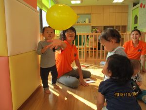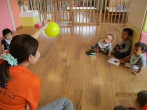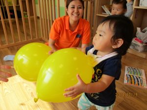 風船を膨らませてみると、今度は風船のフワフワした動きを怖がって逃げていくお友だちも