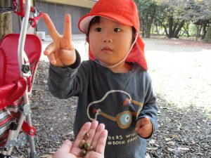 神社で遊ぶ時間はなかったのですが、ドングリを見つけることができましたよ![]()