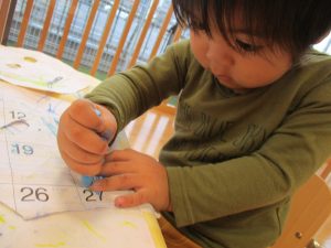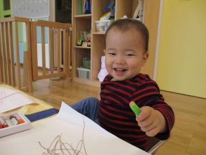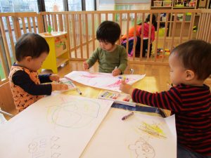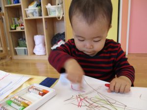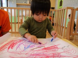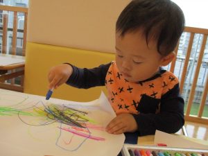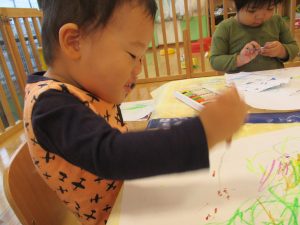 1歳児クラス・いちごさんは、お絵描き