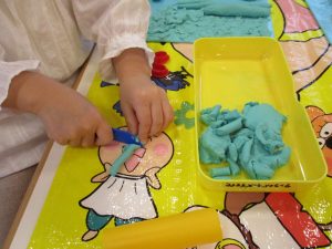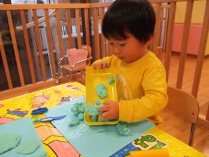 2歳児クラス・りんごさんは、粘土あそび