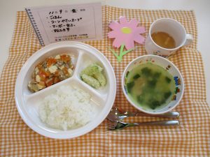 *ごはん *コーン野菜スープ *マーボー豆腐 *粉ふき芋
