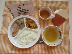 *ごはん *大豆のシチュー *ツナサラダ *ブロッコリー甘酢和え