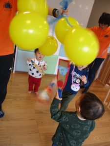 打ってもすぐに戻ってくる風船に大はしゃぎの子どもたちでした![]()