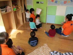 会の始まりは、お誕生日おめでとうのペープサート![]()