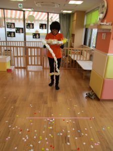 新聞紙から紙吹雪が降ってくると、『やりたいー!』という声もあがりました![]()