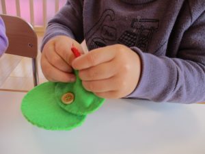2歳児りんご組さんは【ボタンはめ】と【箸つかみ】をしました。