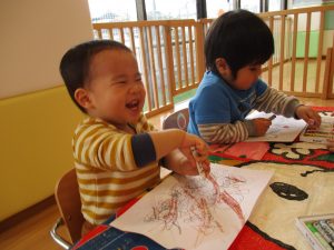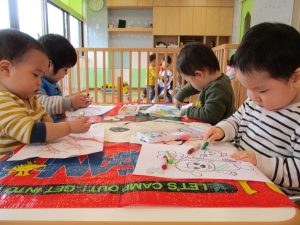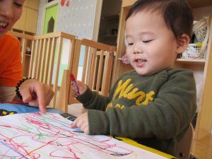 1歳児いちごぐみさんは【ぬりえ】をしました![]()
