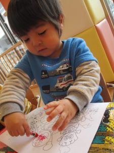 好きな動物や食べ物を保育者に描いてもらってぬりぬり![]()